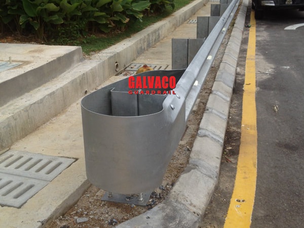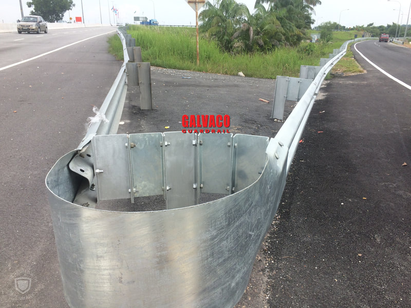 Galvaco guardrail malaysia manufactures and supplies guardrail post and packers, various types of end sections, terminal sections, reflectors and other related guardrail accessories for road safety. These highway guardrails complies to AASHTO M180-00 and are hot dip galvanized to international standards of BS 729/EN ISO 1461 for corrosion protection and to ensure durability in all weather conditions.